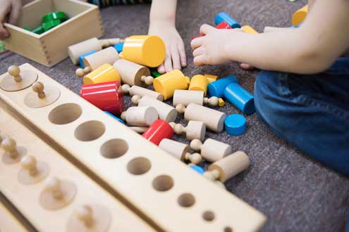 This is exactly what sensorial learning does. When a child’s brain is developing, the ability to learn mostly comes from the sensory organs and sensorial learning tends to stimulate these organs. The child’s brain develops the ability to isolate and discriminate. Sensorial apparatus provides a particular purpose and focus. It includes using the child's hands, senses, and spontaneous activity. When a young child sees something new and exciting, he or she will want to touch the object. Young children will grab a new kitten and hold it immediately, they want to feel the reality of the object.